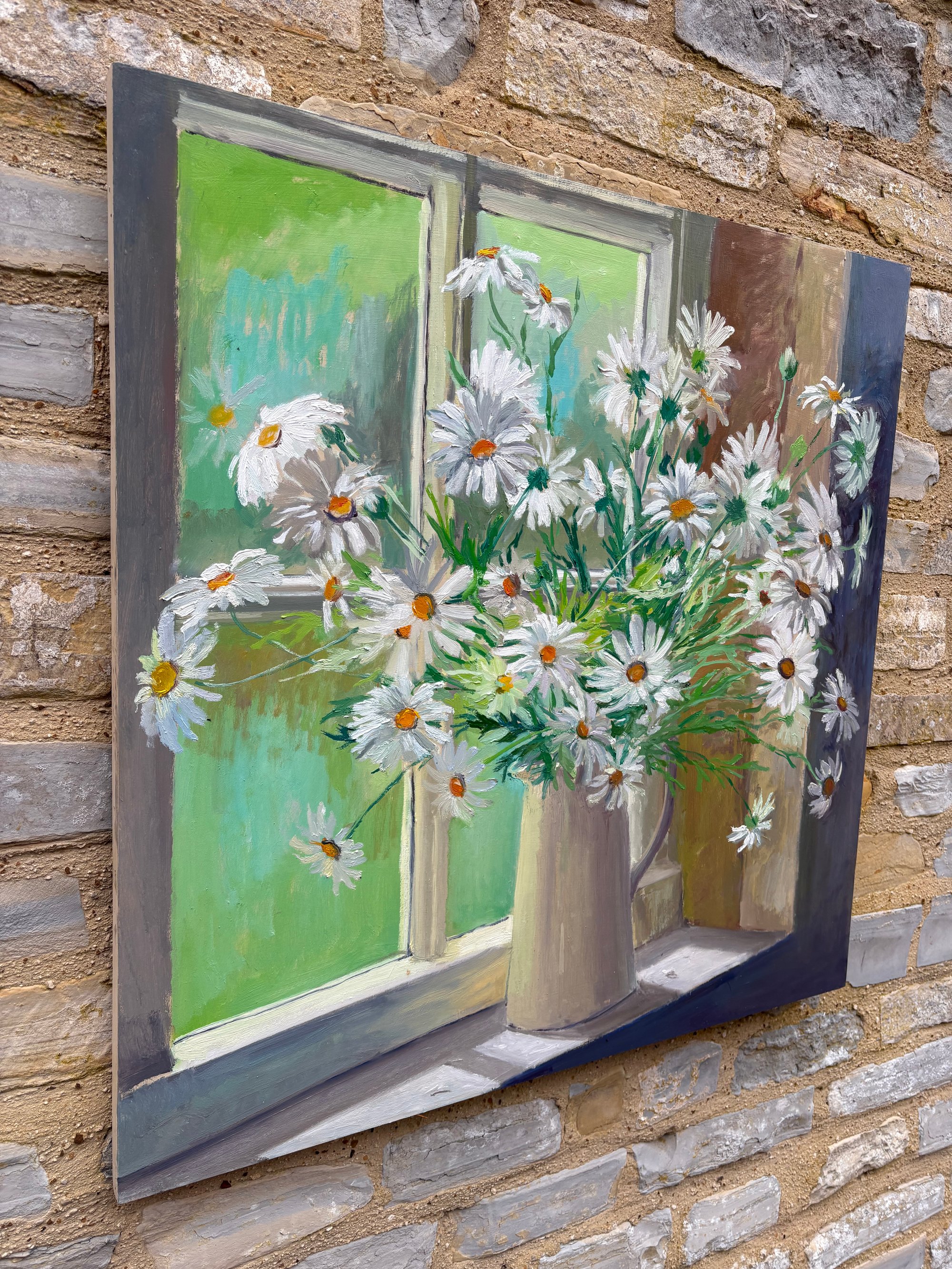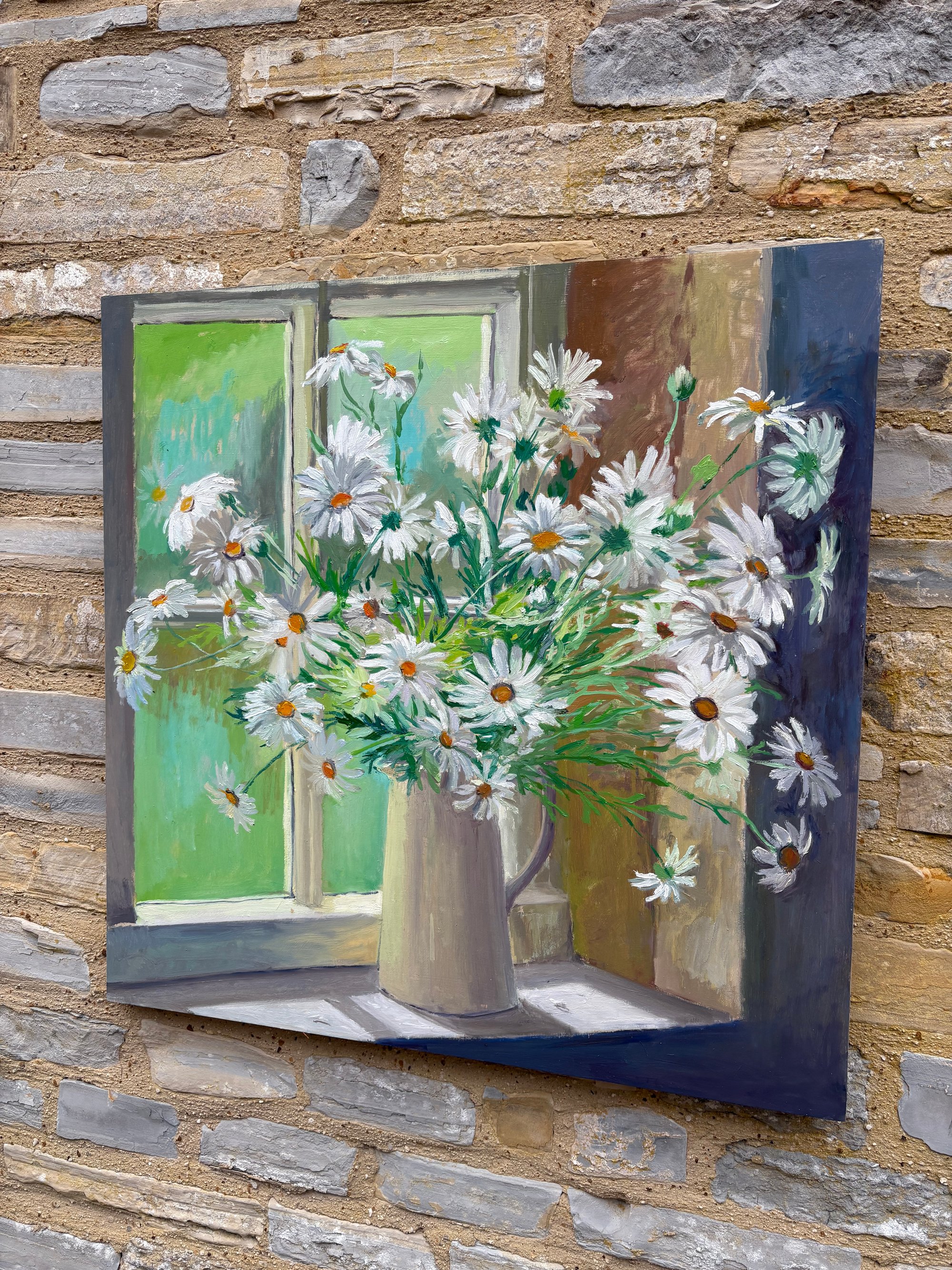 Daisies in Studio Window. Original oil painting on Panel- 77cm x 77cm